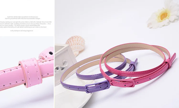 1.2cm Children Belts Super-thin PU Waistbands Simple Solid Color Casual Belts Girls Apparel Accessories Purple Red Wholesale 1pc