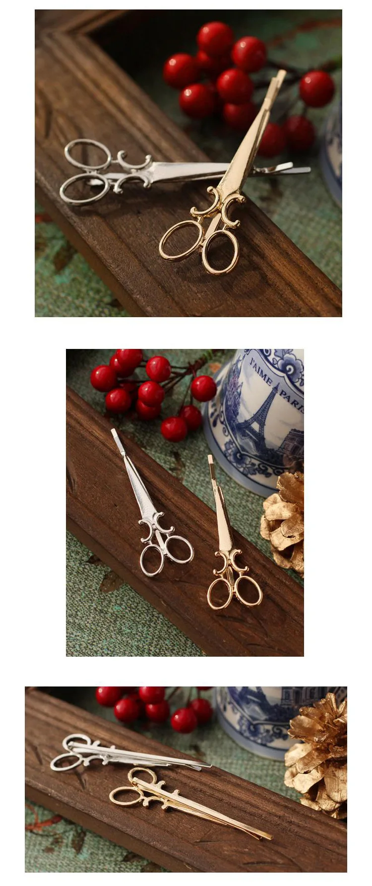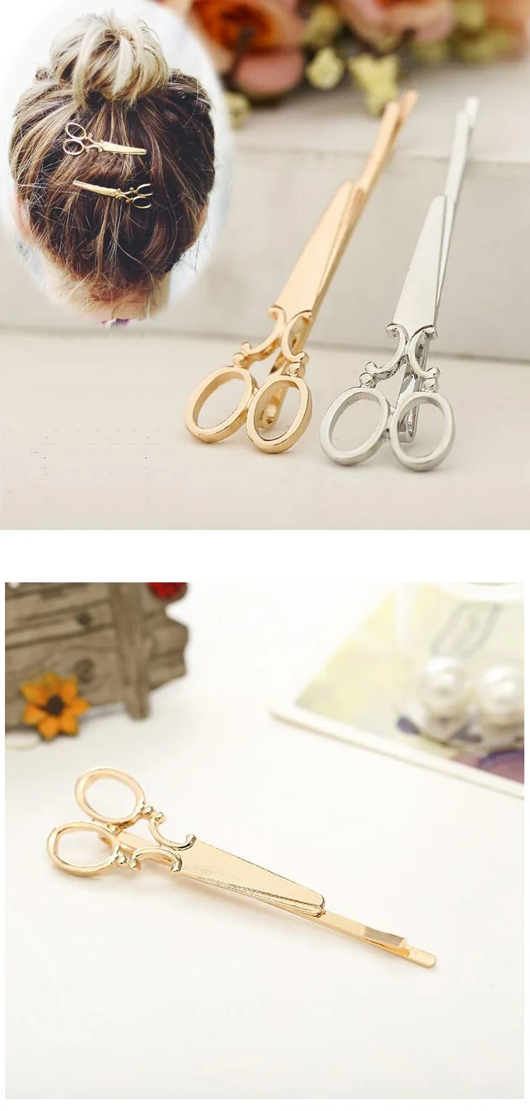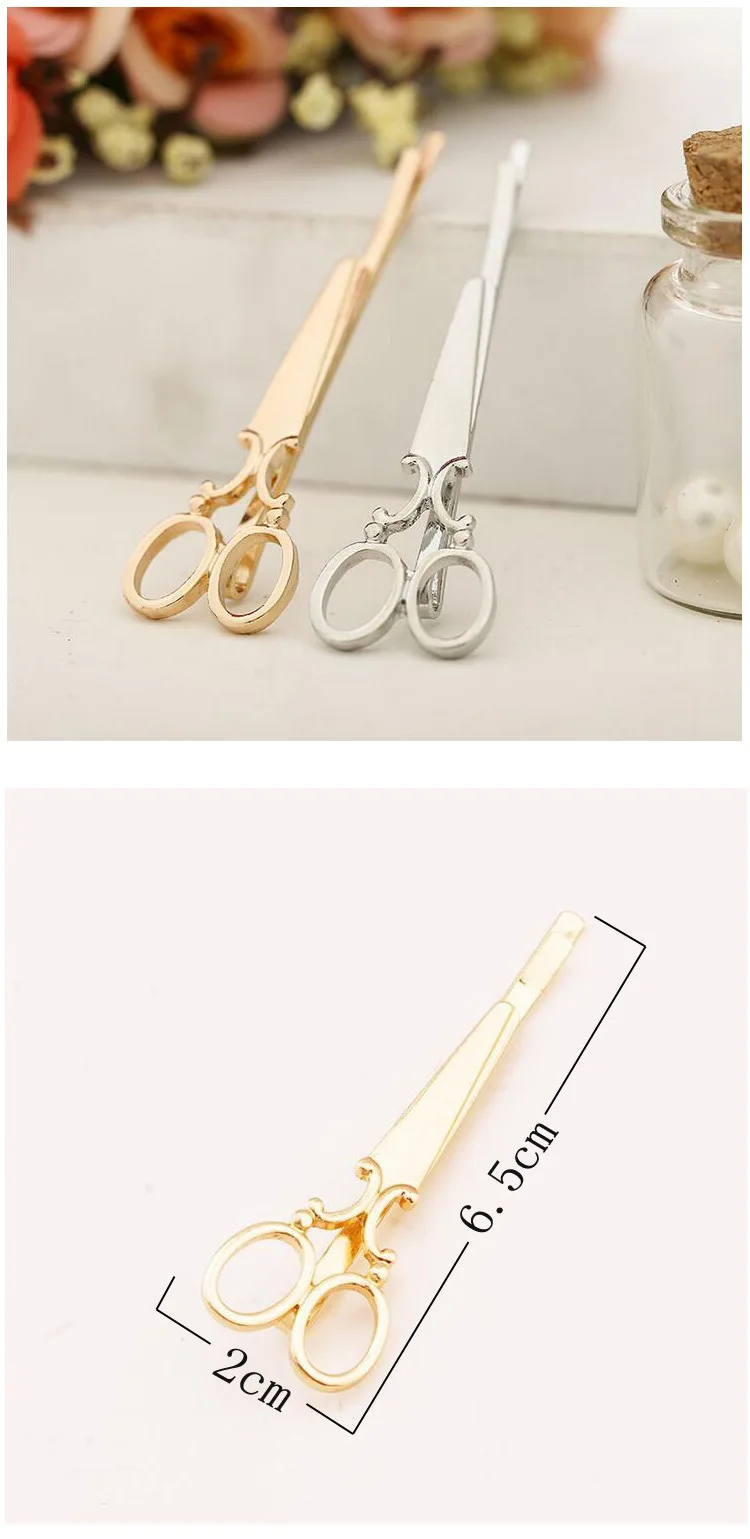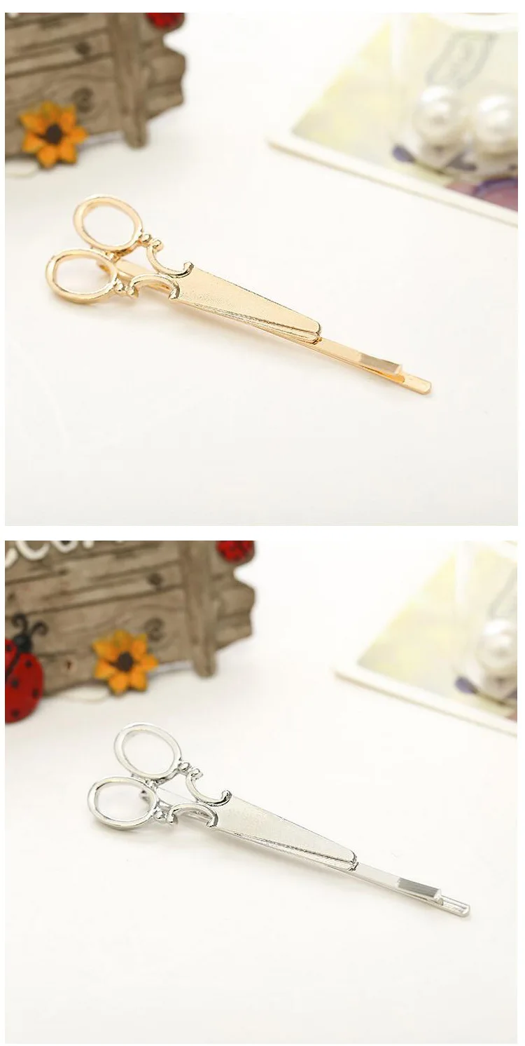 2021 Hot Sale 2pcs Hair Clip Girl Lady Hair Barrettes Apparel Accessories Headpiece Women Hairpin Scissors Pattern Gold Silver