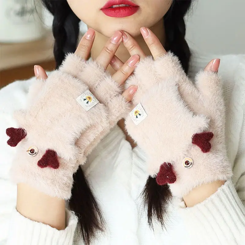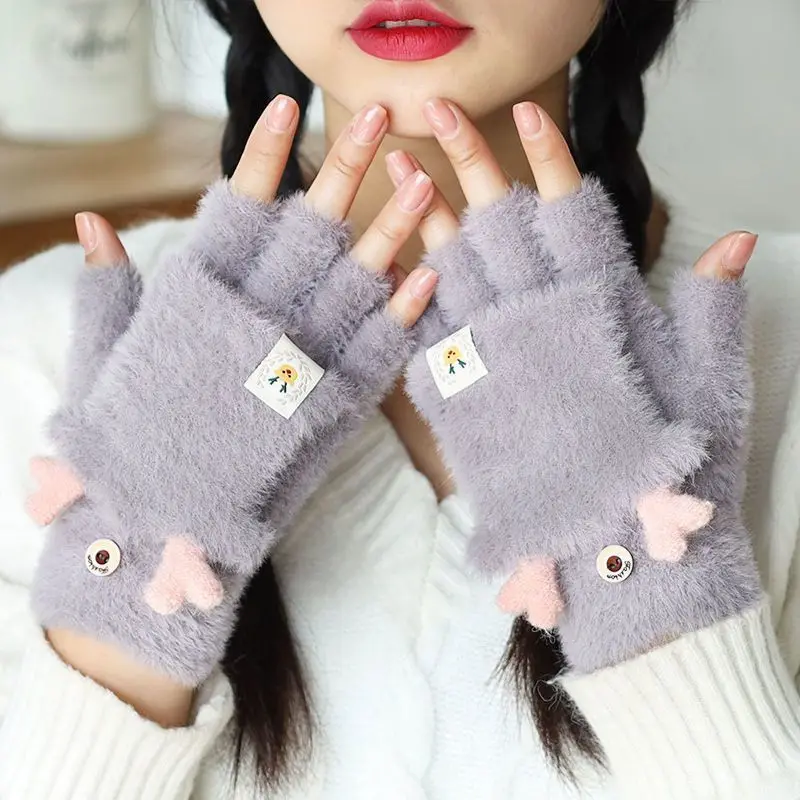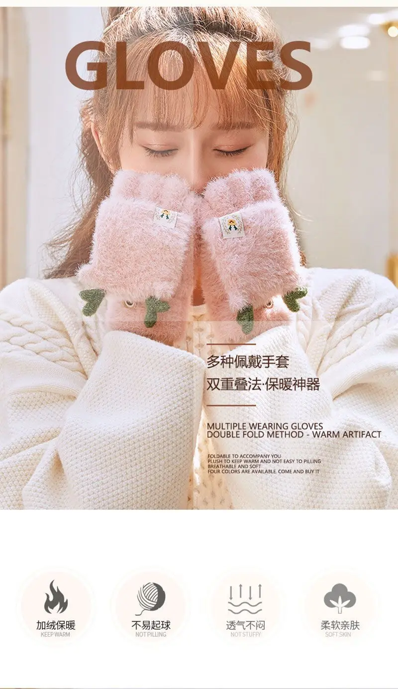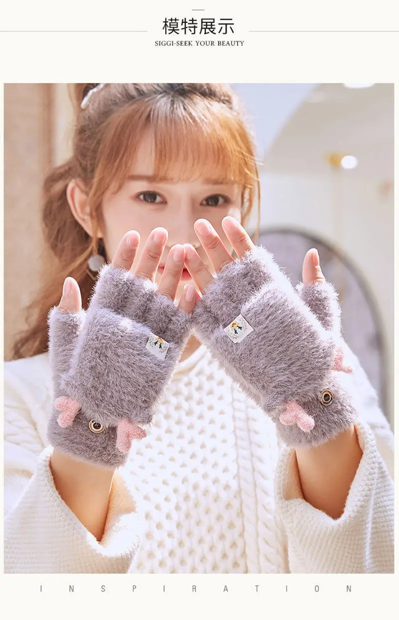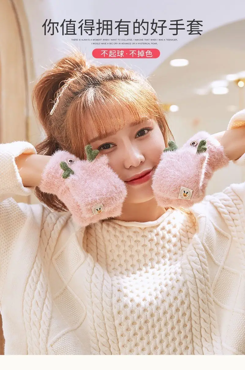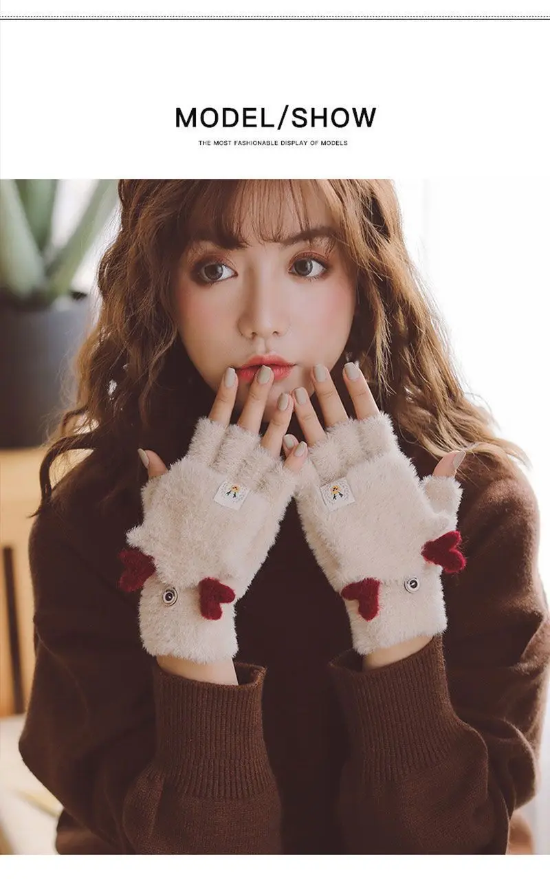 2023 Imitation Mink Cartoon Antlers Knit Mittens Women Flip Half Finger Glove Christmas Gifts Winter Student Write Warm Glove