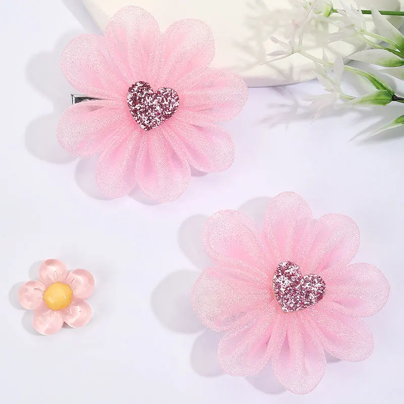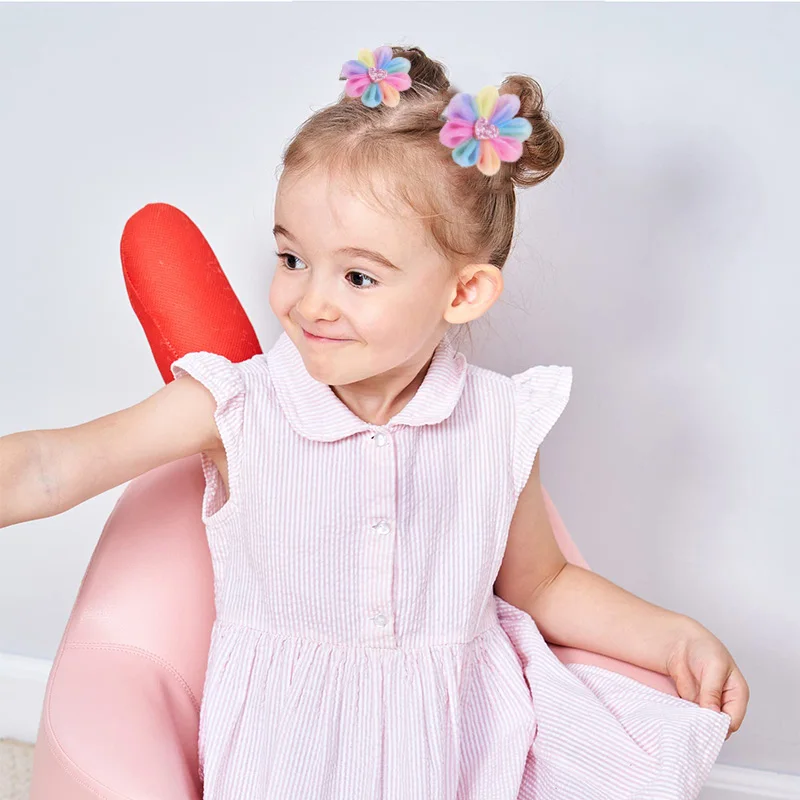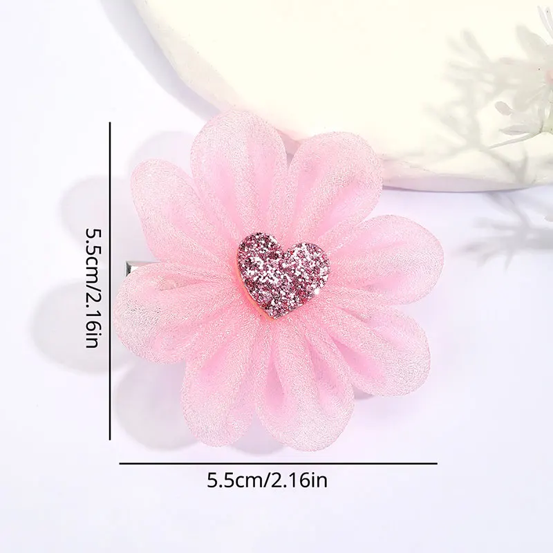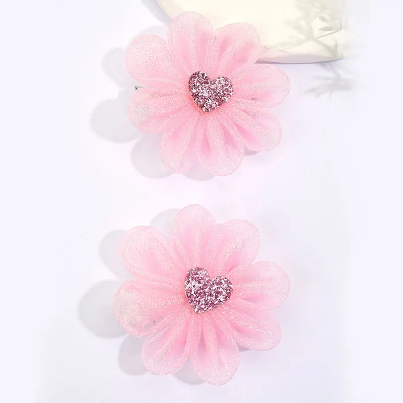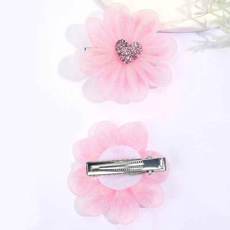 2PCS Sweet Pink Flower Hair Clips For Kids Boutique Mesh Hairpins Girls Apparel Headwear Baby Hair Clip Fashion Hair Accessories