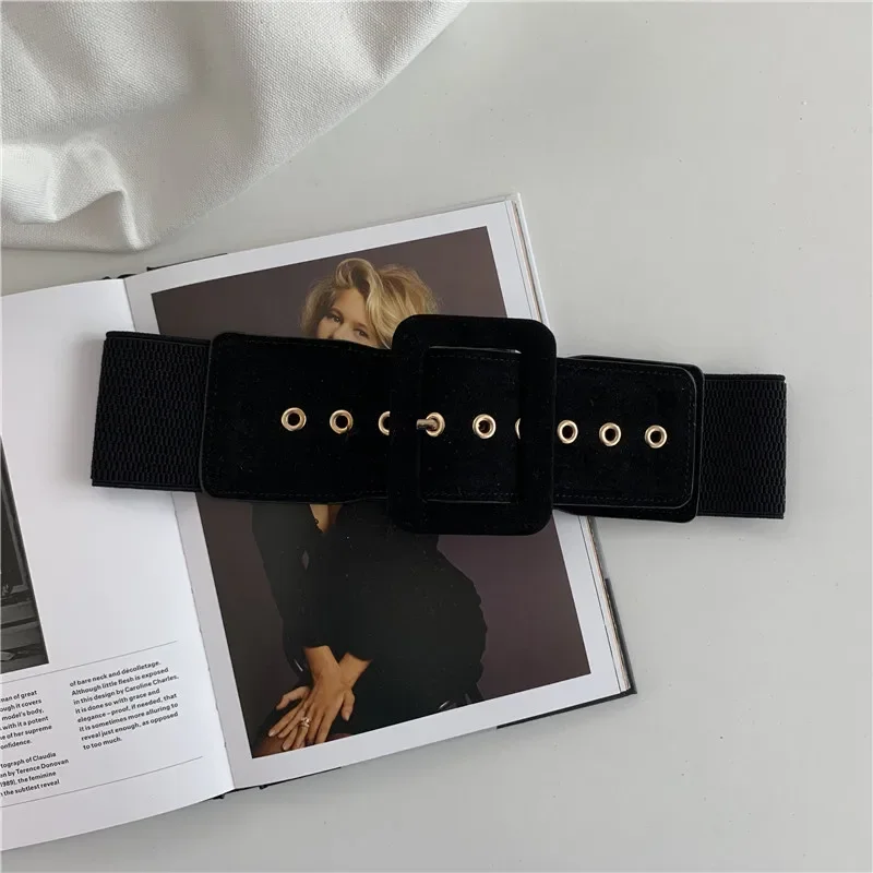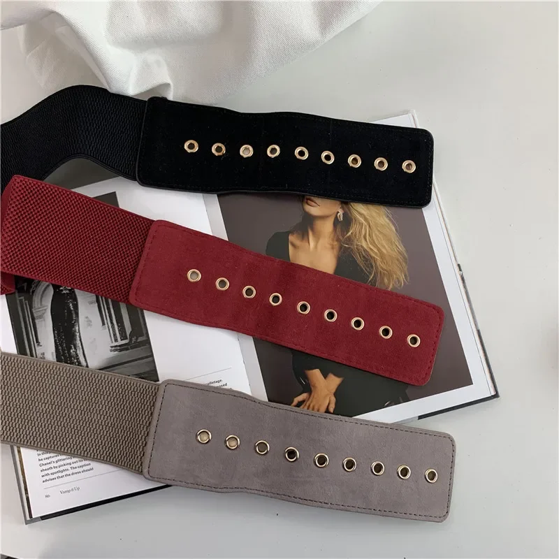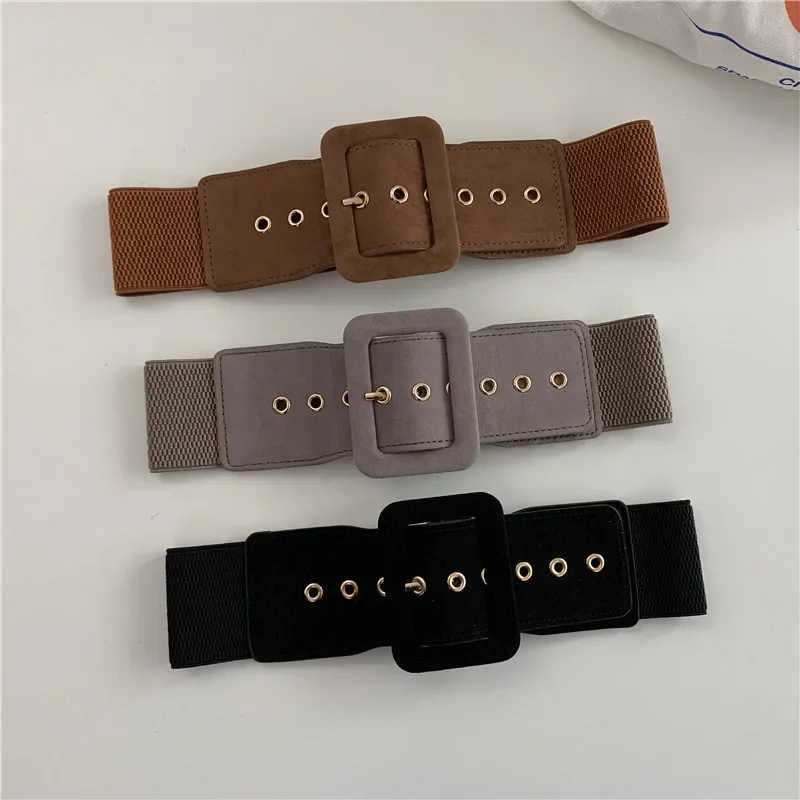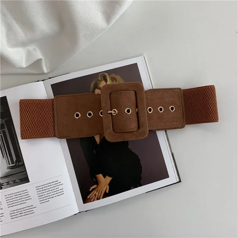 Women Suede Belt Stretch Wide Waist Belts Metal Buckle Leather Strap Female Apparel Lady Accessories Dress Waist